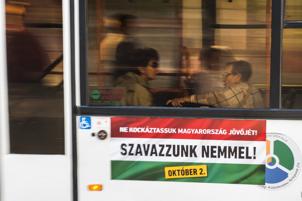 Egyetlen fillért sem költött náluk az állam a népszavazással kapcsolatos tájékoztató hirdetésekre – hárított kezdetben a hét regionális Közlekedési Központ Zrt. (köznyelven: Volán-társaság) Harangozó Tamásnak. Az MSZP-s képviselőt meglepte a válasz, mert közben a buszokon ott virított a felirat: "Ne kockáztassuk Magyarország jövőjét! Szavazzunk nemmel!" Újabb közérdekű adatigénylésében már azt kérte: az összes kvótanépszavazással kapcsolatos hirdetésről adjanak számot a cégek. Ekkor derült ki, hogy a társaságok nem hazudtak, valóban nem rendelt tőlük a Miniszterelnöki Kabinetiroda – legalábbis közvetlenül nem. Merthogy Rogán Antal hivatala egy messze nem ismeretlen, luxemburgi közvetítőcéget iktatott be, az Odex Outdoor Expert Kft. szerződött.