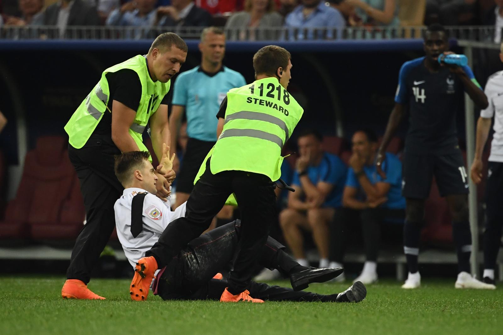A térfélcsere után megélénkült a játék, mindkét kapu előtt adódtak lehetőségek, majd az 54. percben négy ember is a pályára futott, megszakítva a játékot. Mint utóbb kiderült, az oroszországi rendszer ismert kritikusai, a Pussy Riot tagjai voltak. A biztonságiak eltávolították őket a gyepről.