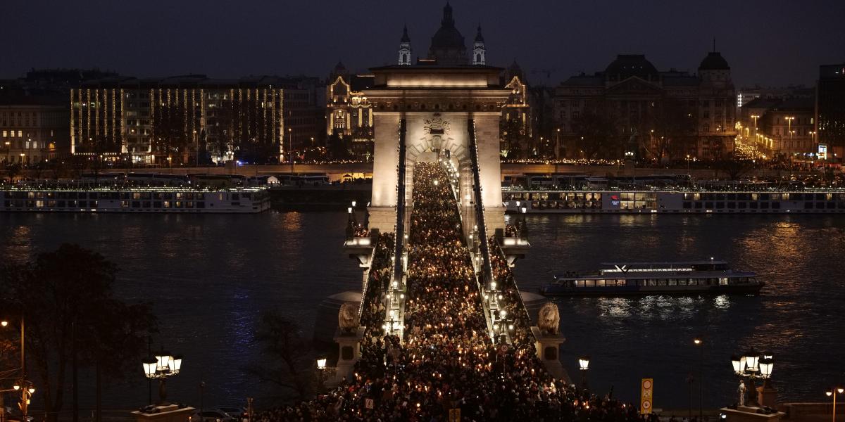 A Deák téri gyülekezőnél még nem látszott, hogy végül mekkora tömeg fog fáklyákkal a Karmelita kolostor elé vonulni Magyar Péter vezetésével. De a menet a délután 3 órás indulás után is nőttön-nőtt, és bár biztosan nem ez volt a valaha volt legnagyobb tiszás megmozdulás, így is tízezrek álltak ki a Szőlő utcai ügy áldozataiért, fiatalok és idősek vegyesen. Riport.