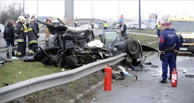 Két fiatal rendőr és egy lány utazott abban az autóban, amely súlyos balesetet szevedett szombaton a ferihegyi repülötérre vezető gyorsforgalmi úton. A lány civil volt, ahogy az autó sem volt rendőrségi jármű. A két rendőrt súlyos sérülésekkel vitték kórházba.