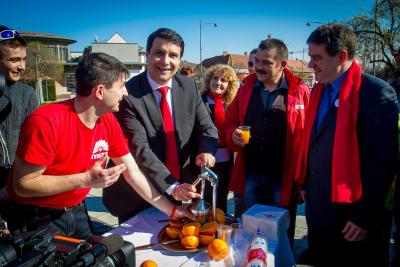 Közpénzből "bizniszelt" a kormány, amikor a 800 millió forintból készíttetett politikai reklámot 200 ezerért eladta a Fidesznek - jelentette ki Törökszentmiklóson a kormányváltó erő miniszterelnök-jelöltje. Gyula főterén, a helyi aktivisták biztatására narancsot facsart Mesterházy; az erről készült fotókat az MSZP elnöke a Facebookon is megosztotta. Mesterházyt berregő órákal várták, mert mint mondták, a rendezvény jelszava az volt: "Ébresztő, Gyula!".