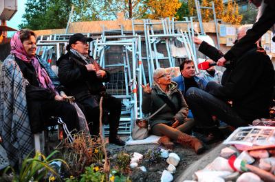 Kéz a kézben "foglalta el" a készülő Szabadság téri '44-es megszállási emlékművet ma hajnalban demonstrálók egy csoportja. A több mint két hete a helyszínen kordont bontó tiltakozók reggel fél hat óta vannak a helyszínen. Ezzel megakadályozzák nemcsak az általuk tegnap este már tizenkettedszer is lebontott - és eddig minden másnap reggel újra felhúzott - kordon visszaállítását, de az építkezés folytatását is.