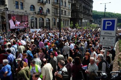A plakátok között egy olyan is feltűnik, amelyben Berlusconi arra utal, hogy a németek tagadják a holokausztot. Úgy foglalt állást, hogy a „németek szerint sosem léteztek koncentrációs táborok”. Elítélte Berlusconi kijelentéseit az európai szocialisták elnöke, a boldár Szergej Sztaniseb.