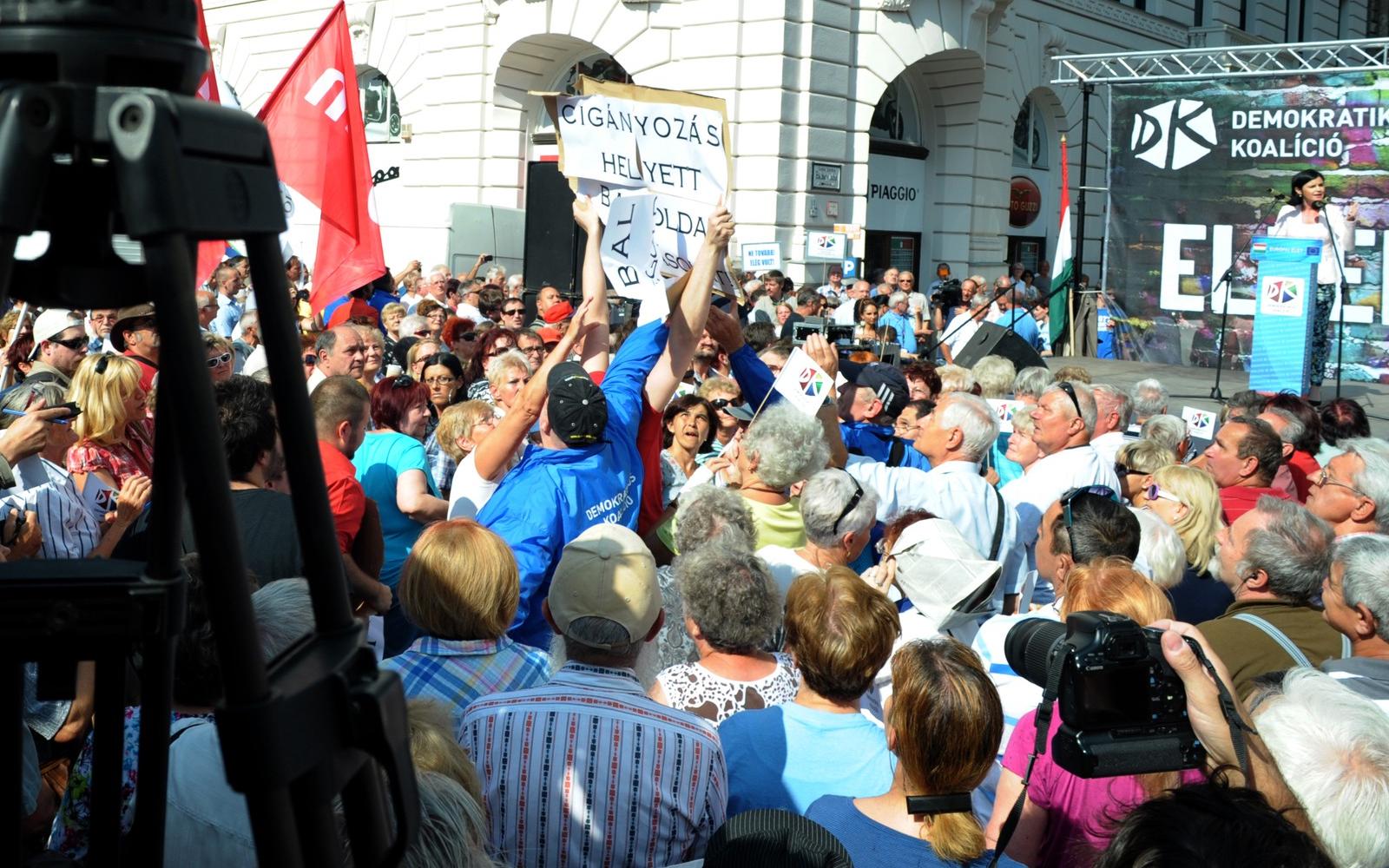 Ha kiderül, hogy DK-tag bántalmazta a párt rendezvényén Gulyás Mártont, akkor ez az ember nem maradhat a párt tagja - jelentette ki Gréczy Zsolt. A DK szóvivője közölte, hogy a videófelvételek alapján nem ismerték fel, hogy kik inzultálták. Lapunkon keresztül is megkövette Gulyást, a Krétakör Alapítvány ügyvezetőjét, akit a szombati demonstráción többször megütöttek, ám továbbra is úgy gondolja, hogy az Együtt-PM szövetségnek köze van a történtekhez. De Gulyás sem járt el helyesen, amikor a "Cigányozás helyett baloldali megoldásokat" feliratú táblát nem a tüntető tömeg szélén, hanem annak közepén tartotta a magasba. Hasonló tiltakozó táblát mások is vittek, őket azonban nem bántottak ezért - tette hozzá a szóvivő.