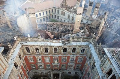 Reggeltől estig őrzik a rendőrök a kedden leégett Andrássy úti palotát – tudta meg a Vasárnapi Blikk.