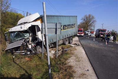 Egy kamion vezetője súlyosan megsérült, amikor járművével egy menetrend szerint közlekedő busszal ütközött kedden az 5403-as úton Kiskunfélegyháza és Kiskunmajsa között.