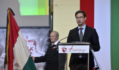Tőkéczki László történész beszédében azt mondta: 1956-ban fantasztikus dolog történt, pár napra megvalósult az a remény, hogy az emberek kimondhatták véleményüket. A kommunizmus több évtizedig elnyomta ezt a lehetőséget - tette hozzá. A történész kiemelte, hogy 1989 után megtörtént az, amit senki nem hitt: vége lett annak a bűnös, "nyomorult világnak", amelyik a hazugságon alapult.