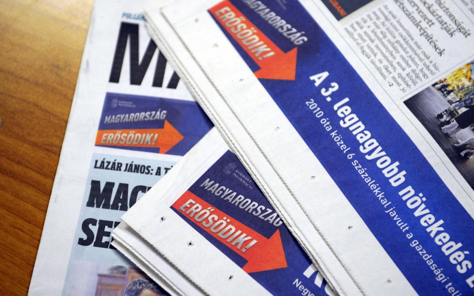 A minap pedig nemrég három újabb „kormányzati információ” is megjelent az újságokban: hétfőn a Magyar Hírlap és a Népszabadság is az új, „Magyarország erősödik” szlogen alatt futó kormányzati kampányt közölte, amelyek szerint immár „Közel 0 százalék az infláció”, „Csökken a munkanélküliség”, és a magyar gazdaság már „a 3. legnagyobb Európában”. Szerettük volna megtudni a Miniszterelnökségtől, volt-e köze az NKH-nak az állami reklámokhoz, azokat mely médiumoknál közlik, és hogy pontosan mennyibe kerültek, de lapzártánkig nem kaptunk választ. Annyi biztos, hogy nem az őszi uniós kampány része – melyben a kormány az Európai Unió magyar gazdaságra gyakorolt érdemeit népszerűsítette összesen 605 millió forintért –, és információink szerint még nem is az NKH felügyelte a megjelenéseket.