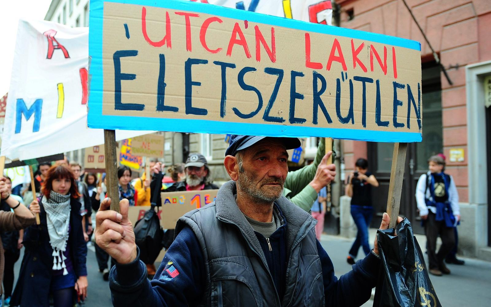 "Elnyomnak minket azzal, hogy megvonják a segélyeket, kihúzzák a lábunk alól a talajt azzal, hogy megbírságolnak, és elzárással fenyegetnek. Orbán Viktor és kormánya politikájával a mélybe taszítja az embereket, a szegényeket még szegényebbé teszi, a hajléktalan embereket pedig megbírságolja és elzárja azért, mert nincs hol lakniuk" - mondta Kovács Tünde, az AVM hajléktalan aktivistája a parlament előtti decemberi tüntetésen, ahol a szervezet aktivistái húsz sátorból álló tábort állítottak fel, ezzel is tiltakozva a közterületen élő hajléktalanok hatósági üldözése és a szegénységben élők ellehetetlenítése ellen. Követeléseik közt szerepel az üresen álló ingatlanok hasznosítása, kiterjedt szociális bérlakásrendszer kialakítása, a lakhatási támogatások növelése és a lakhatáshoz való jog törvénybe foglalása. Látva a kormányzat hozzáállását azonban félő, zárt ajtókat döngetnek.