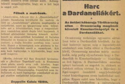 Az antant felvonul a Dardanellák ellen. Oroszország bejelentette igényét a nagy jelentőségű vízi útra. Száz éve írtuk.