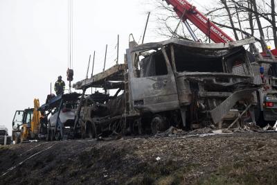 Kigyulladt egy gépkocsikat szállító kamion a 86-os főúton szombat hajnalban Kozmadombja külterületén. A kiégett autók miatti kár mintegy 40 millió forint.