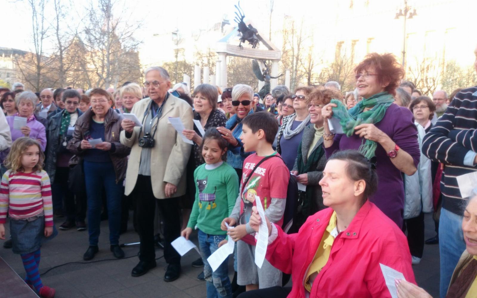 E hét kedden (március 7-én) fotókat gyűjtöttek, Ady Endre, József Attila és Radnóti Miklós verseket olvastak fel a Szabadság téren a Tiszta emlékezettel a történelemhamisítás ellen csoport tagjai. Azok, akik Magyar Fruzsina, Zoltai Andrea és Mécs Imre kezdeményezésére tavaly április 8-tól július 31-ig naponta tiltakoztak az általuk csak "elátkozottnak" nevezett megszállási emlékmű és az Orbán-kormány emlékezetpolitikája ellen.