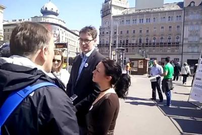 Egyeztetésre várakozó ügyfelek a Quaestor Értékpapír Zrt. Károly körúti irodája előtt 2015. április 15-én. MTI Fotó: Szigetváry Zsolt