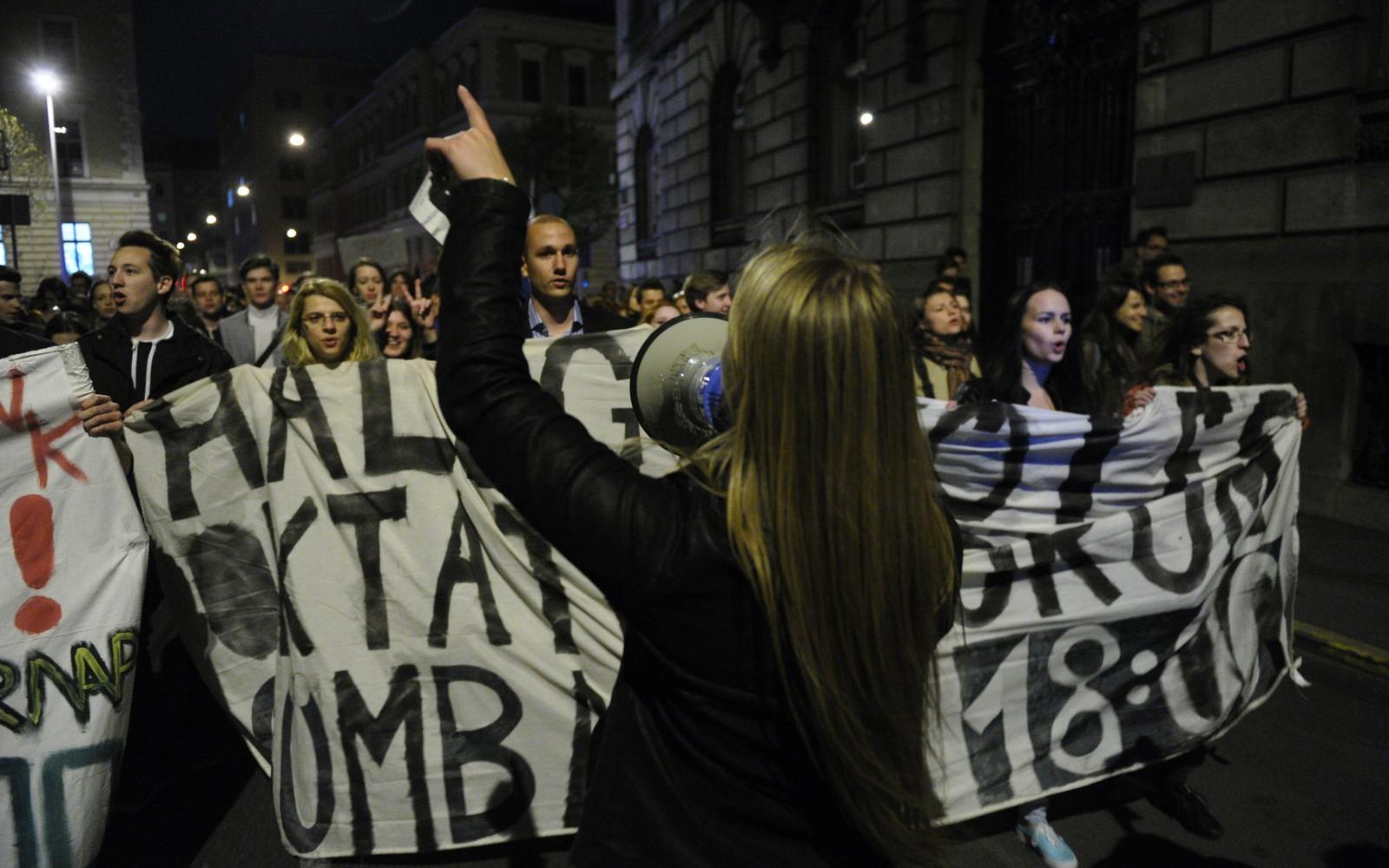 - Az MSZP szerint a kormány végső csapást akar mérni a felsőoktatásra a tervezett átalakításokkal. Kunhalmi Ágnes, az Országgyűlés kulturális bizottságának szocialista alelnöke az Emmi Alkotmány utcai épülete előtt azt mondta, a kormány miatt vannak katasztrofális állapotok a felsőoktatásban, és amit most a kabinet tesz, az nem a bolognai rendszer racionalizálása, hanem a felsőoktatás "pártfőiskolává" való silányítása. Jelezte, támogatják a hallgatók követeléseit, és a hallgatók jól teszik, ha küzdenek az átalakítás ellen.