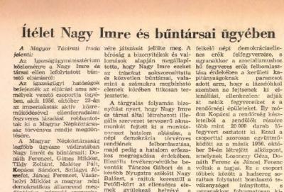 Földváryné Kiss Réka hangsúlyozta: június 16. két szempontból is fontos a magyar történelemben, hiszen 1958-ban ezen a napon végezték ki - talán az utolsó, zárt ajtók mögött lefolytatott sztálinista kirakatpert követően - Nagy Imre volt miniszterelnököt és társait. Az 1989-es újratemetésük pedig a rendszerváltás talán legszimbolikusabb, katartikus pillanata volt.