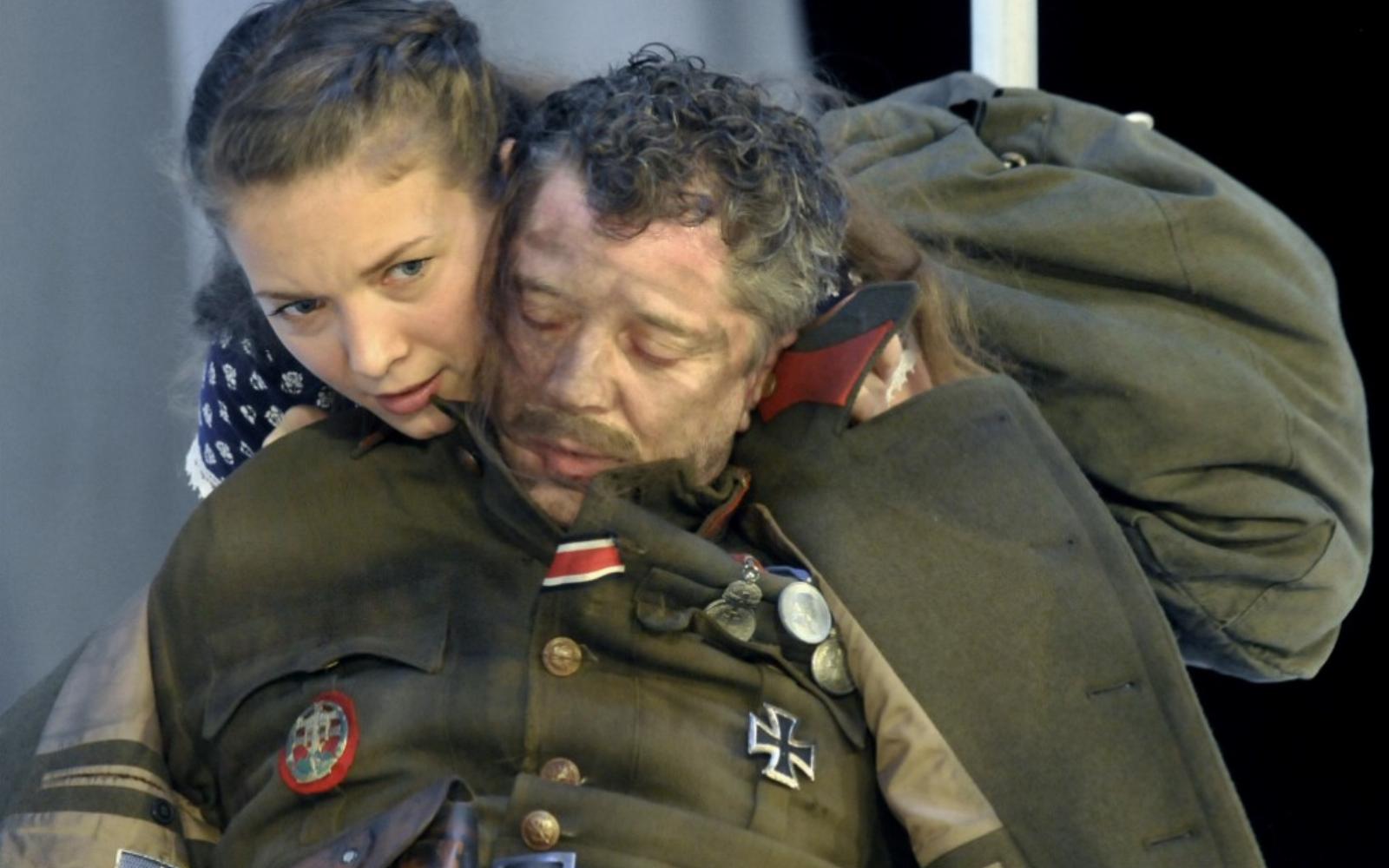 Béres a szokásosnál erősebben megmutatja az agymosást is azzal, hogy korabeli híradó képeket, hősiességre buzdító, fennkölten hazug szövegeket használ a falucska látszólagos idilljének ellenpontozásaként. A felvételeket arra a temérdek fehér ingre vetíti ki, amelyek Horesnyi Balázs díszlettervező leleményeként, lelógnak a zsinórpadlásról.