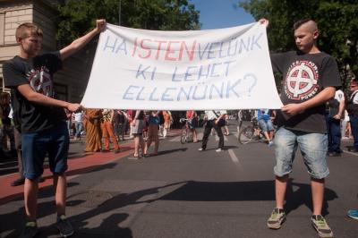 És azon a meggyőződésemen túl, hogy Zoli és én természetesen roppant különlegesek és csodálatosak vagyunk, szombaton az az érzésem támadt, hogy van még tízezer hozzánk hasonló, velünk egyforma. Mert ott voltak a közvetlen közelemben. Az Andrássy úton elég sokakat láttam matrózcsíkos cuccban, aztán fintorogni a politikusok láttán, a Lánchídon hallottam őket sajnálkozni, hogy hétfőn munkába kell menni, vagy türelmetlenkedni a kordonnál, árnyékot lesni az égető nap elől, szánakozó-megvető pillantással sújtani azt a tizenöt kivénhedt nácit, aki csak nem adta föl, hogy provokáljon. És láttam őket szeretni is. Volt ott nagyon helyes fiú tök szép lánnyal, baromi helyes fiú még annál is szebb fiúval, aztán jöttek egymást kézen fogó lányok, láttam idősebb úriembereket évtizedes társukkal, s fiatal, hozzám hasonló magányosokat, talán egy, az enyémhez hasonló rohadék után sírva, mert az nem szereti őket viszont.