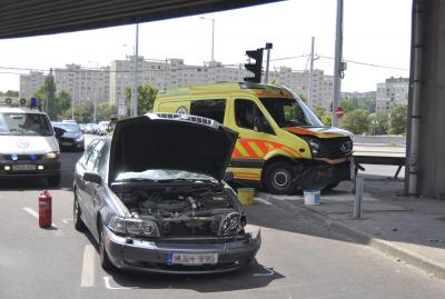 Összeütközött két gépkocsi az Üllői úton, a repülőtérre vezető útszakaszon kedden kora délután. A balesetben egy ember megsérült, őt a mentők ápolják.
