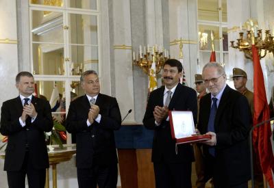 Áder János köztársasági elnök átadta a Magyar Szent István-rendet Polgár Judit sakkozónak és Eötvös Péter zeneszerzőnek csütörtökön, a nemzeti ünnepen.