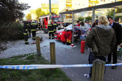 Két személyautó ütközött a főváros XIV. kerületében, a Fogarasi úton, az egyik jármű a baleset után egy buszmegállóba csapódott, ahol annak padjához szorított egy ott várakozó fiatal nőt - tájékoztatott a Fővárosi Katasztrófavédelmi Igazgatóság szóvivője kedd este.