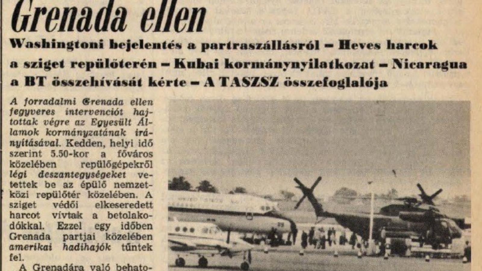 Ronald Reagan amerikai elnök kedden bejelentette, hogy az Egyesült Államok fegyveres erői partra szálltak a Grenadai Köztársaság területén, elfoglalták a sziget mindkét repülőterét, s megszállták az ottani Saint George orvosi egyetem épületeit. Reagan közölte, hogy az invázióra a kelet-karibi államszövetség kérésére került sor, s annak célja „a rend és a demokrácia sürgős helyreállítása”.