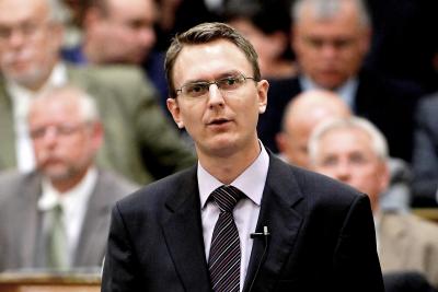 Sallai R. Benedek LMP-s országgyűlési képviselő, Gőgös Zoltán, az MSZP elnökhelyettese, Bodnár Zoltán, a Liberálisok ügyvivője, Szigetvári Viktor, az Együtt elnöke és Tordai Bence, a Párbeszéd Magyarországért elnökségi tagja az El a kezekkel Mezőhegyestől! elnevezésű tüntetésen FOTÓ: MTI/ROSTA TIBOR