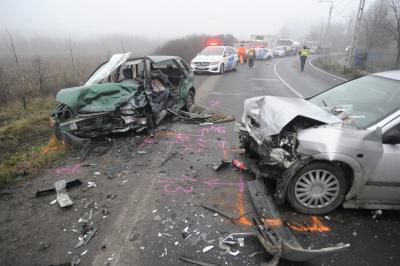 Racsné Galambos Gréta elmondta, az eddigi adatok szerint egy bolgár felségjelzésű járműszerelvény borult fel, feltehetően túlsúly miatt. A kisbusz egy másikat szállított tréleren, és utóbbi bicsaklott be a sztráda külső forgalmi sávjában. A sérülteket kórházba vitték, a műszaki mentés befejezéséig rendőrök irányítják a forgalmat. Haladni csak a leállósávon lehet a főváros felé.