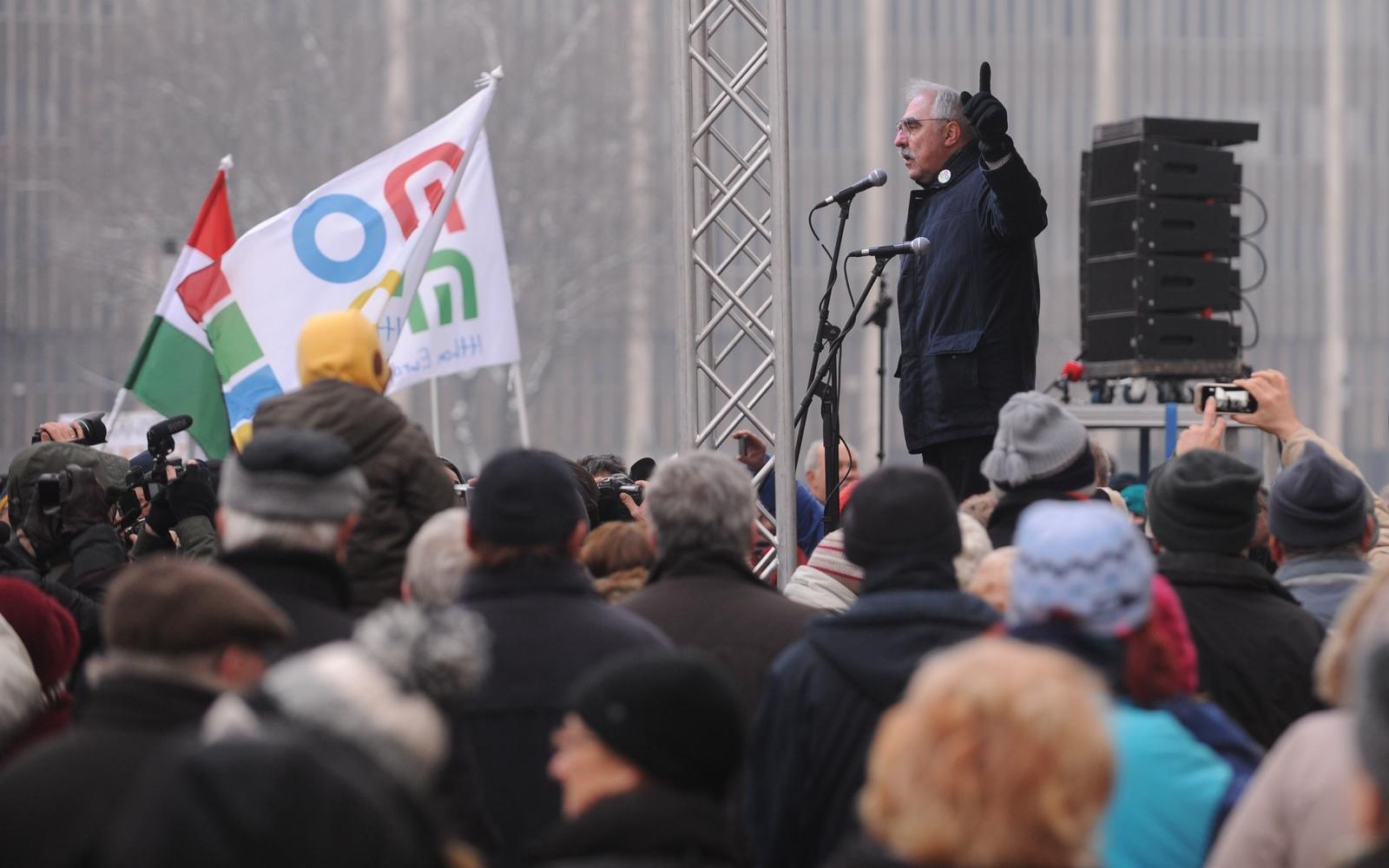 "A mi öntudatunk, jövőnk nem lehet a diktátor (.) áldozata. Minden körülmények között küzdeni fogunk a szabadságért" - mondta. A pártelnök többször is hangsúlyozta, hogy az alaptörvény-módosítás arról tanúskodik, a hatalom retteg.