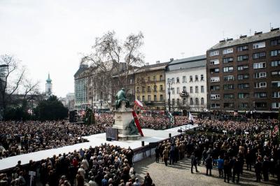 "Ha nem fogunk össze, nem lesz meg a katasztrófa felelőse" - jelentette ki Tili Károly hangsúlyozva: a térség lakói nem tudják elfogadni a törvényszék január 28-án hozott felmentő ítéletét és csak az összefogás erejében bíznak. A demonstráción - amelyen mintegy ötven ember vett részt - Ferenczi Gábor, Devecser polgármestere azt mondta: nem elfogadható, hogy nincsenek felelősök, de az is elfogadhatatlan lenne, ha "a kisemberek vinnék el a balhét", hiszen nem a gátőr vagy a szivattyúkezelő hibája okozta a katasztrófát. Szerinte ha a Mal Zrt. teljesítette volna környezetvédelmi vállalását, folyamatosan végzett volna ellenőrzéseket, akkor nem következett volna be a tragédia. Reményét fejezte ki, hogy a másodfokú eljárásban "a valódi felelősök ülnek majd a vádlottak padján", és olyan büntetés születik, amely arányban áll a katasztrófával.