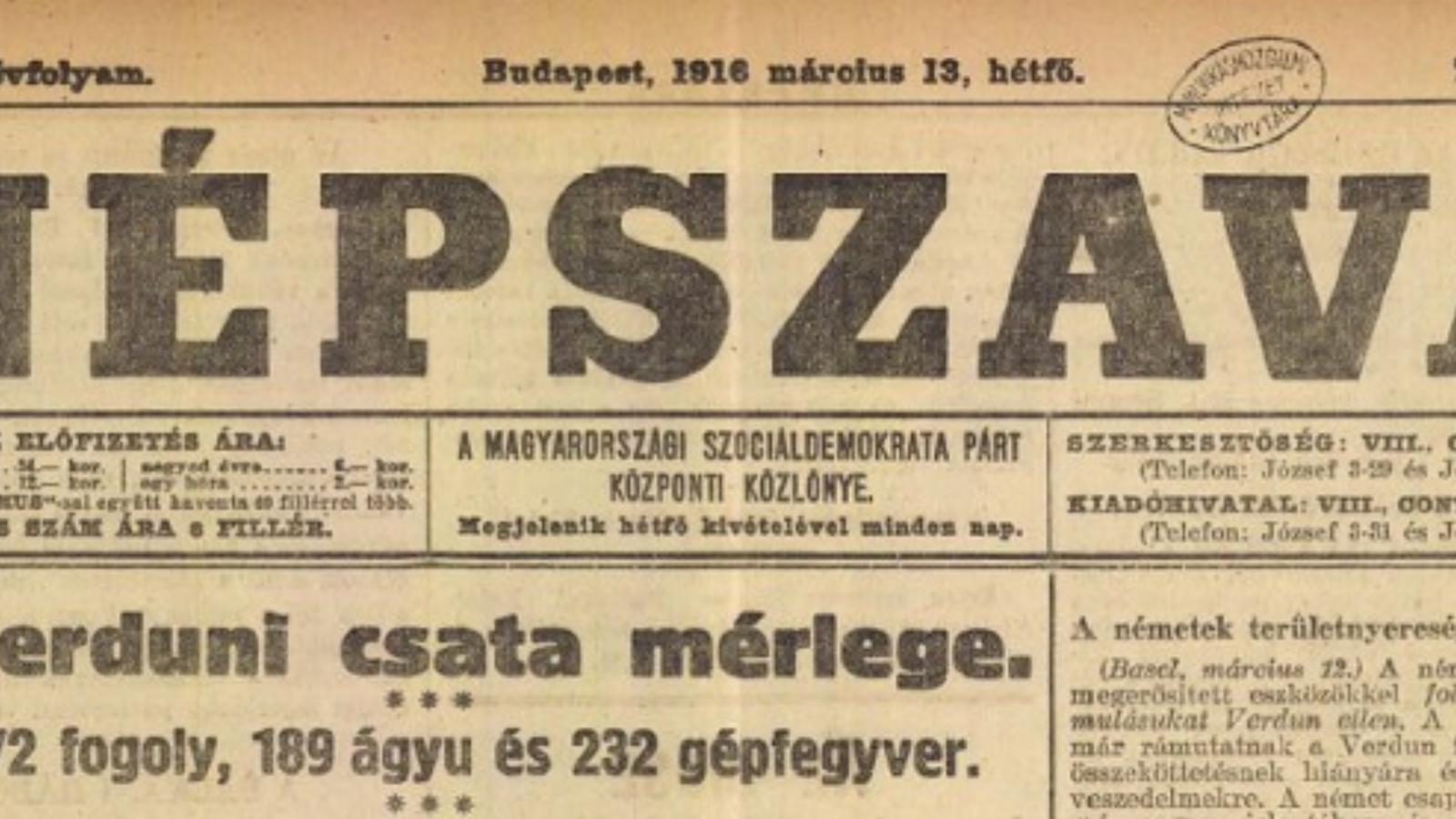 Népszava 1916. március 13.