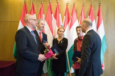 A Magyar Huszár és Katonai Hagyományőrzők lovas huszárai a Várkert Bazár épülete előtt az 1848-49-es forradalom és szabadságharc kitörésének 168. évfordulóján 2016. március 15-én.