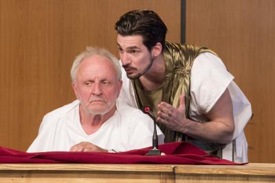 A nagy Romulus című komédia egészen szokatlan – a római amfiteátrumokra minimál berendezésben emlékeztető – játszótérben, lépcsőzetesre átalakított nézőtéren várja közönségét a Budaörsi Latinovits Színházban. Dürrenmatt műve tökéletes táptalaj ahhoz, hogy bemutassa, milyen súlyos tényező egy államfő egy adott ország életében, különösen akkor, ha történetesen az állam feje nem teljesen épelméjű.