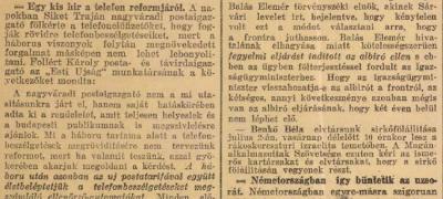 Siket Traján: Minden előfizető a beszélgetések száma arányában fizeti a telefondíjat. Ezzel talán elérhetjük, hogy a kávéházak sok fölösleges beszélgetése a minimumra redukálódik