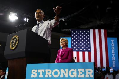 Személyesen is részt vesz Hillary Clinton kampányában a leköszönő amerikai elnök, Barack Obama. „Azért vagyok itt, mert hiszek Hillary Clintonban” – fejtette ki első közös fellépésük alkalmával. „Még sosem volt ennyire alkalmas egy posztra sem férfi, sem nő” – közölte Obama az észak-carolinai eseményen. Az elnök a tömeggel együtt ezt skandálta: „Hillary, Hillary”. Elismerések sorával illette karakterét, majd átölelte őt.