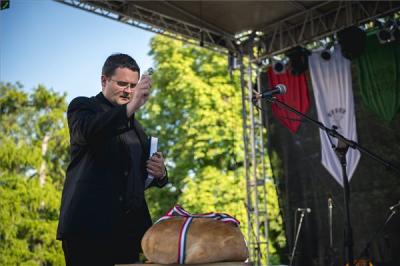 Megáldották a Magyarok kenyere programban összegyűjtött lisztből készült augusztus 20-i kenyeret szombaton a pécsi székesegyház előtt megtartott ünnepségen. Az ünnepi kenyeret Kajtár Edvárd, a székesegyház plébánosa áldotta meg és Páva Zsolt (Fidesz-KDNP), Pécs polgármestere szegte meg.