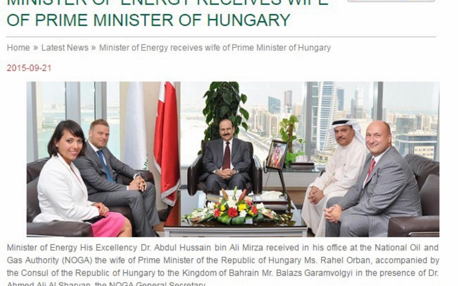 Tehát szerinte hazudott a bahreini Olaj- és Gázügyi Hatóság, amely azt állította a honlapjára feltöltött hír és fotó szerint, hogy energiapolitikai tárgyalásokat folytattak "a magyar miniszterelnök feleségével" (ahogy tévesen titulálták a Orbán lányát - a szerk.). A cikk szerint többek között arról volt szó, hogyan tudná szorosabbra fűzni a két ország a gazdasági együttműködés szálait. A beszámoló kitért arra is, hogy a delegáció megköszönte a vendéglátást, és reményüket fejezték ki, hogy fenntartható üzleti kapcsolat alakul a két ország között új befektetési lehetőségekkel.