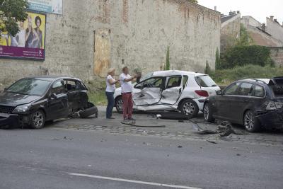 Hat parkoló kocsit tört össze egy Mercedes kora reggel a fővárosban, a Baross utcában, amikor a kisodródott kocsi sofőrje az autóknak rohant.