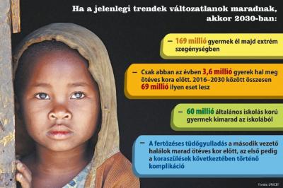 A legszegényebb gyermekek kétszer akkora eséllyel halnak meg ötéves koruk előtt, mint a gazdag családból származó társaik - olvasható az UNICEF idei, a világ gyermekeinek helyzetéről szóló jelentésében, amelyben kitérnek arra is, hogy 2011 óta globálisan nő azoknak a száma, akik nem járnak iskolába, miközben a mélyszegénységben élőknek szinte lehetőségük sincs arra, hogy kitörjenek az "ördögi körből". Magyarországon 140 ezer veszélyeztetett gyerek él, akiket bármikor kiemelhetnek családjuktól. Az SOS Gyermekfalvak kutatása szerint a magyar szülők egyik legnagyobb félelme, hogy elveszítik gyermekeiket.