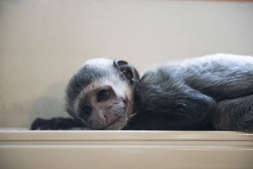 A 8–15 állatból álló csoport élén egy nőstény áll. Idejük nagy részét nappal a fák tetején ülve töltik, éjszaka pedig alszanak, ám ilyenkor is mindig van egy egyed, aki a ragadozókat figyeli. A felnőtt egyedek színe fekete-fehér, arcuk szürke és szőrtelen, farkuk végén pedig nagy fehér bojt található. Az újszülöttek ezzel ellentétben életük első heteiben szinte teljesen fehér színűek, rózsaszínű arcuk, kezük, lábuk és füleik kivételével.