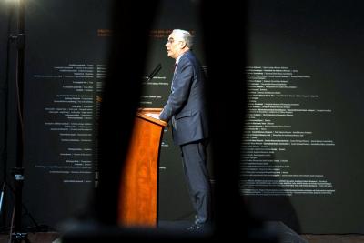 Szentmártoni János elnök beszédet mond a Magyar Írószövetség tisztújító közgyűlésén a Budapest-Fasori Evangélikus Gimnáziumban 2016. december 10-én. MTI Fotó: Mohai Balázs