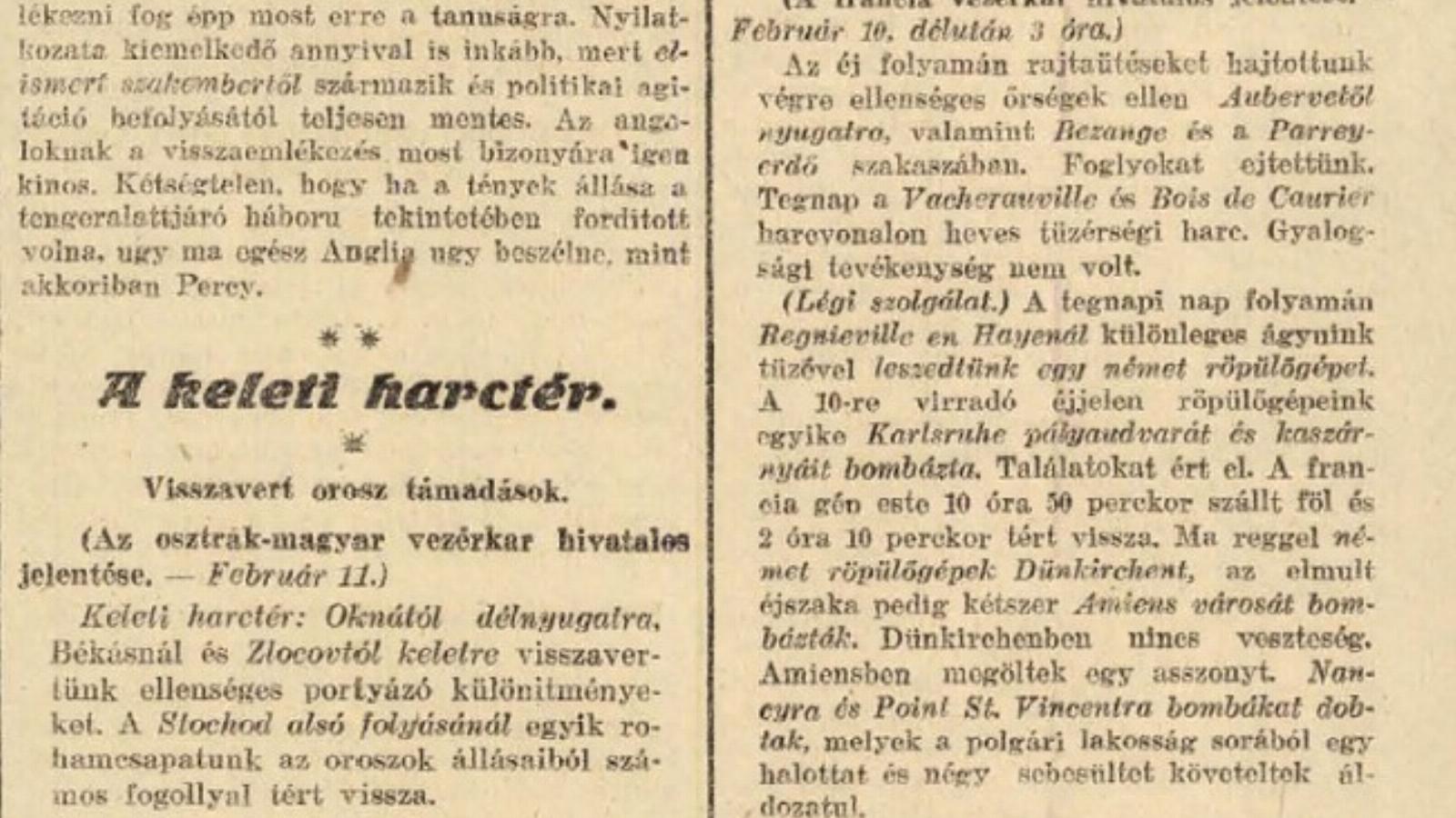 A francia gép este 10 óra 50 perckor szállt föl és 2 óra 10 perckor tért vissza. Ma reggel német röpülőgépek Dünkirckent, az elmúlt éjszaka pedig kétszer Amiens városát bombázták, Dünkirchenben nincs veszteség. Amiensben megöltek egy asszonyt. Nancyra és Point Su Vincentra bombákat dobtak, melyek a polgári lakosság sorából egy halottat és négy sebesültet követeltek áldozatul.
