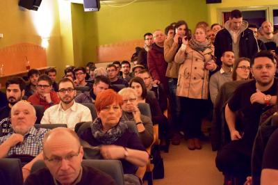Már negyedórával a kezdés előtt nem lehetett beférni a Momentum Mozgalom (MoMO)szegedi bemutatkozására a Grand Café mozitermében. Évek óta nem láttunk ennyi fiatalt politikai rendezvényen. A MoMO eddigi történetét és szándékait ismertető bevezetés után provokátorok próbálták zavarba hozni Orosz Annáékat.