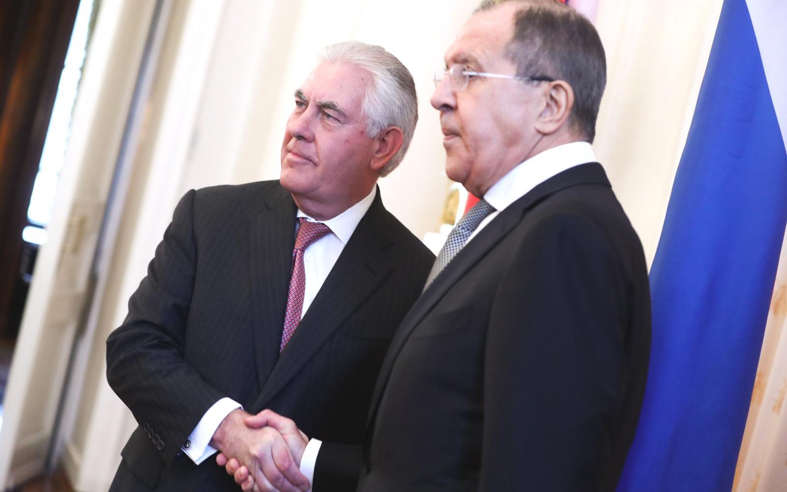 Külügyminiszterként első alkalommal tárgyalt az orosz fővárosban Rex Tillerson. Az ExxonMobil volt vezérigazgatójának kiváló üzleti kapcsolatai voltak Oroszországgal, Szergej Lavrov orosz külügyminiszterrel kezdett megbeszélései azonban fagyos légkörben zajlottak. A tanácskozás kezdetén az orosz diplomáciai vezetője kemény hangon elítélte a Szíriában végrehajtott amerikai rakétacsapást, s kifogásolta az új amerikai vezetés kiszámíthatatlanságát. A tárgyalások céljaként az éles ellentétek ellenére az álláspontok közelítését jelölték meg. Lavrov a TASZSZ hírügynökség szerint azt mondta, meg akarják ismerni Washington álláspontját, a "valódi amerikai szándékokat".