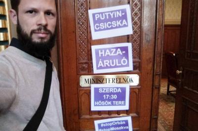 Tordai Bence, a Párbeszéd szóvivője és kommunikációs igazgatója Facebook-oldalán mutatta meg, milyen feliratokkal ("Hazaáruló" és Putyin-csicska") plakátolta ki Orbán Viktor dolgozószobájának ajtaját a Parlamentben. Kövér László házelnök az akció miatt "örökre" kitiltotta az ellenzéki politikust, sőt, megvonta a belépés jogát Szabó Tímea, a Párbeszéd társelnökének minden vendégétől is, ezzel ellehetetlenítve a párt munkáját.