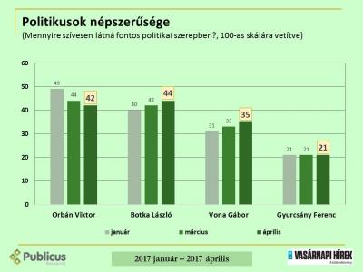 Az elmúlt egy hónapban a Fidesz támogatottsága egy százalékpontot csökkenve 24 százalék. Az MSZP és Jobbik tábora nem változott, így 14 és 11 százalék a Publicus Intézet felmérése szerint, amely a Vasárnapi Hírek megbízásából készült.