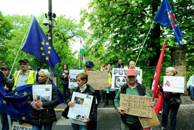 Maroknyian mentek fel tüntetni szombat délután Orbán Viktor Cinege úti házához a Demokrata Ellenállás szervezésében, hogy átnevezzék az utat Putyin sugárúttá. Ezt meg is tették a demonstrálók, akik "Ruszkik haza" és "Orbán takarodj!" rigmusokkal tiltakoztak az egyre növekvő orosz befolyás ellen.