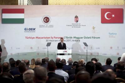 A keményen dolgozó, ifjú magyar külügyminiszter a minap (június 30-án) még a magyar-török csúcs keretében mondott beszédet egy ankarai üzleti fórumon, ( alsó kép)  és kedden már Moszkvában kapta lencsevégre az MTI/KKM fotósa (Szabó Árpád) amint boldogan kezezik a magyar kormány nagy megbonthatatlan baráti országa külügyminiszterével, Szergej Lavrovval.