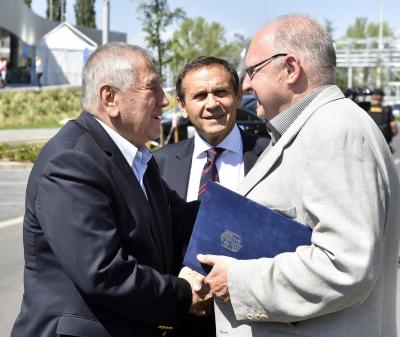 Seszták Miklós nemzeti fejlesztési miniszter, a szervezőbizottság elnöke, Gyárfás Tamás, a Nemzetközi Úszó Szövetség (FINA) alelnöke, Fürjes Balázs, az egyes kiemelt budapesti beruházásokért felelős kormánybiztos és Cornel Marculescu, a FINA ügyvezető igazgatója ülteti a fát a jeles napon ( az igazgató születésnapja ) a Duna Aréna előtt 2017. július 17-én. Jobbra Tóth József, a XIII. kerület polgármestere.