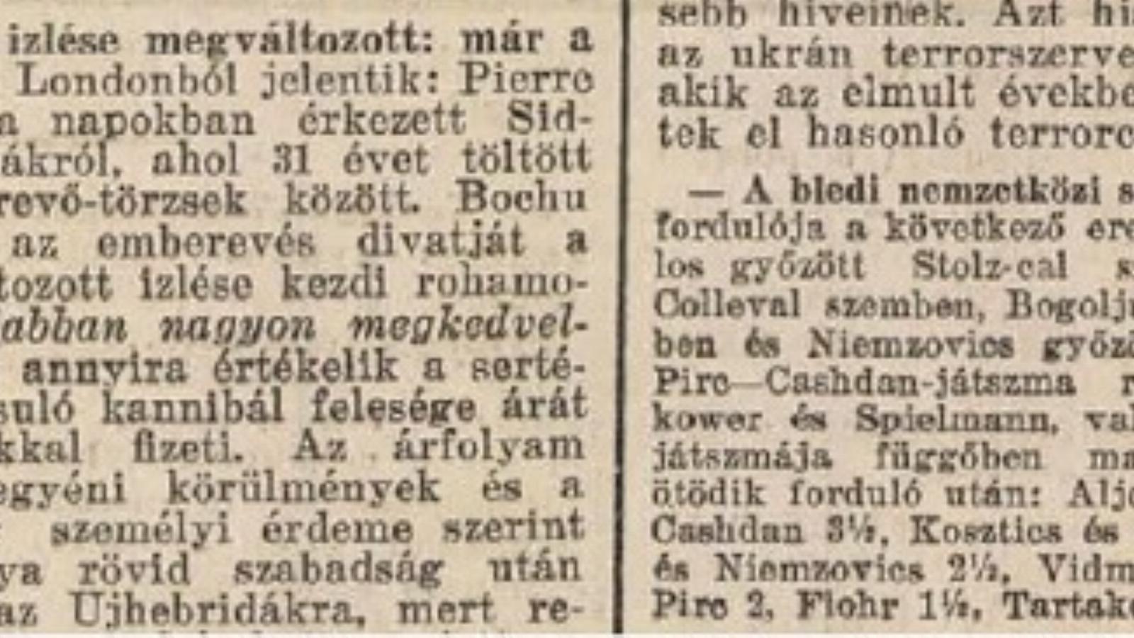 Londonból jelentik: Pierre Bochu térítőatya a napokban érkezett Sidneybe az Új-Hebridákról, ahol 31 évet töltött a legvadabb emberevő-törzsek között.