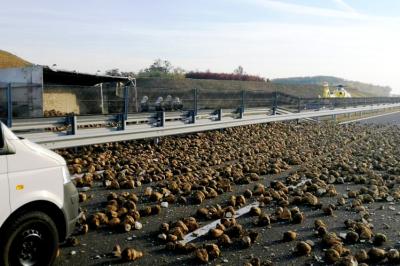 Felborult egy kamion szerdán az M60-as autópályán, Pécs közelében, a rendőrség a pálya mindkét oldalát teljes szélességben lezárta, miután a rakomány a másik pályatestre is átszóródott- közölte a rendőrség a honlapján. A tehergépjárművet vezető férfi súlyos sérüléseket szenvedett. A helyszínelés idejére az 58-as úti csomópontnál leterelik, illetve a kökényi körforgalomnál nem engedik fel az autópályára a járműveket, kerülni a kökényi bekötőút felé lehet.